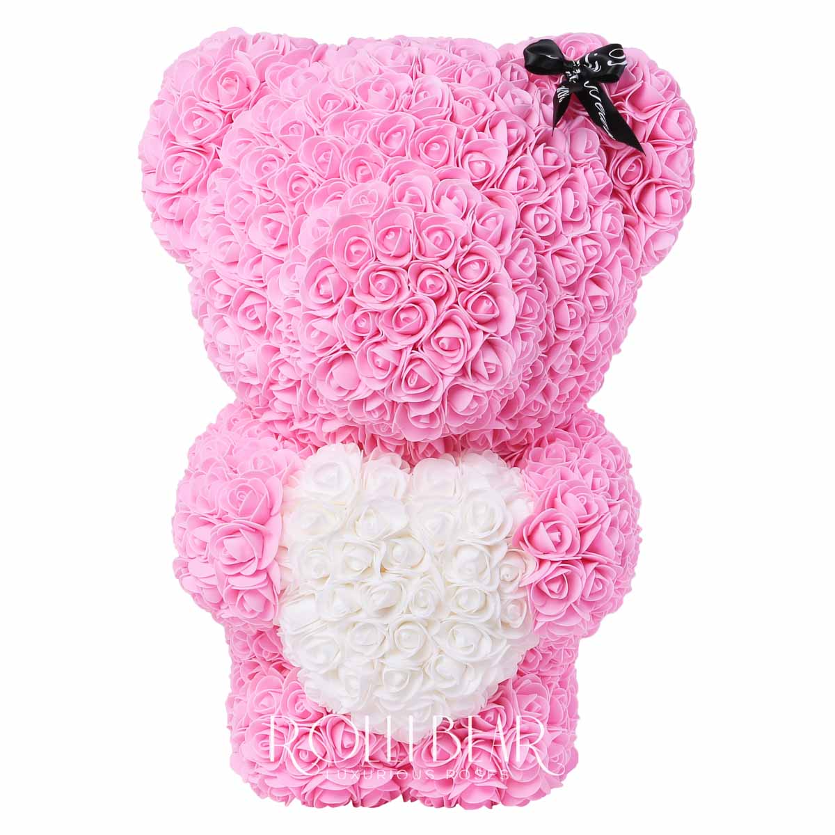Ursuleț din Trandafiri Roz cu inimioară – 55cm