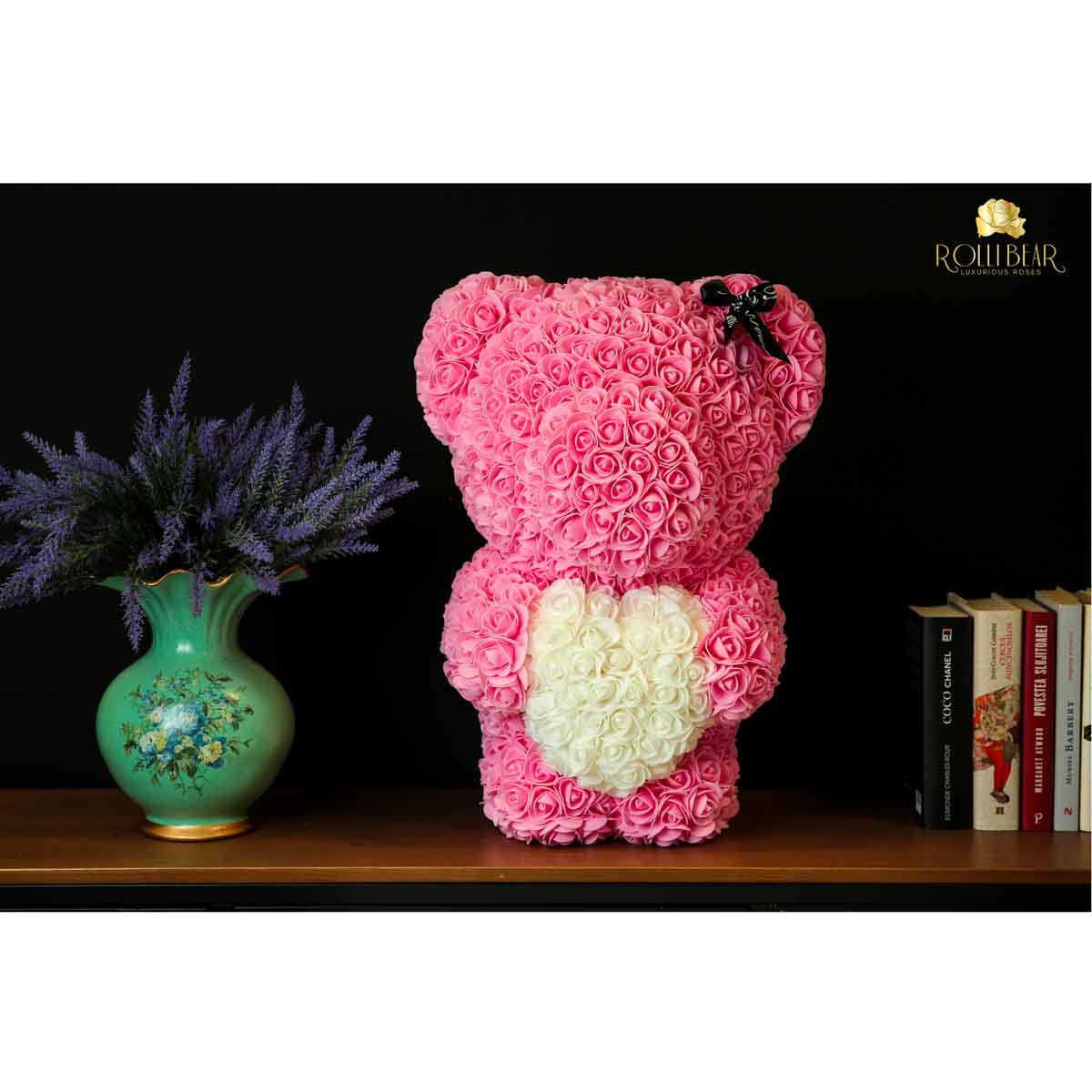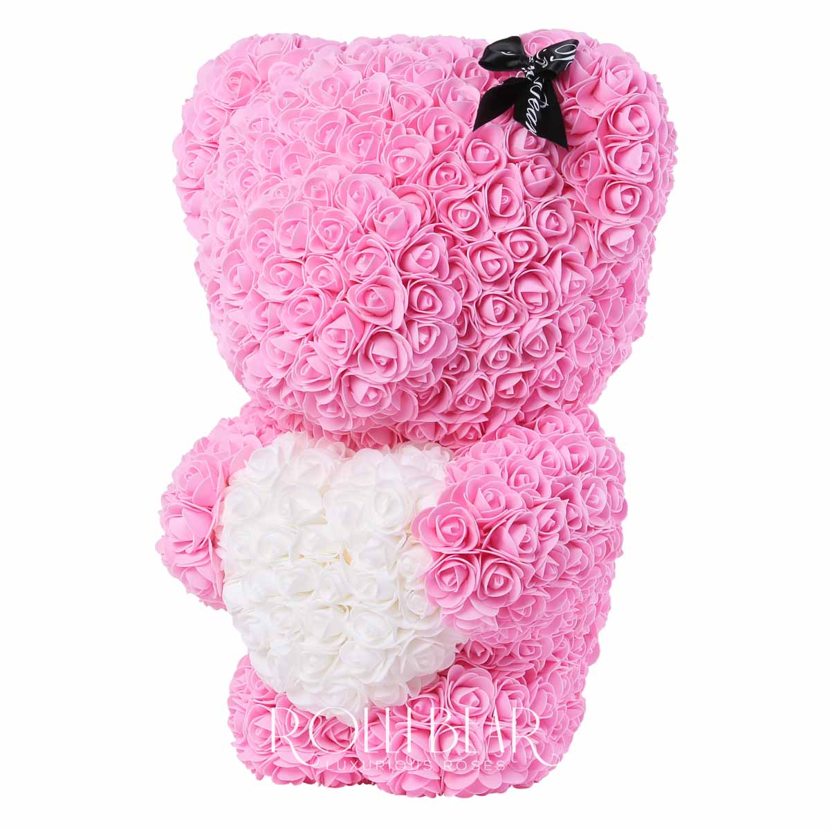 SKU: ursulet-din-trandafiri-roz-cu-inimioara-55cm Categorie: