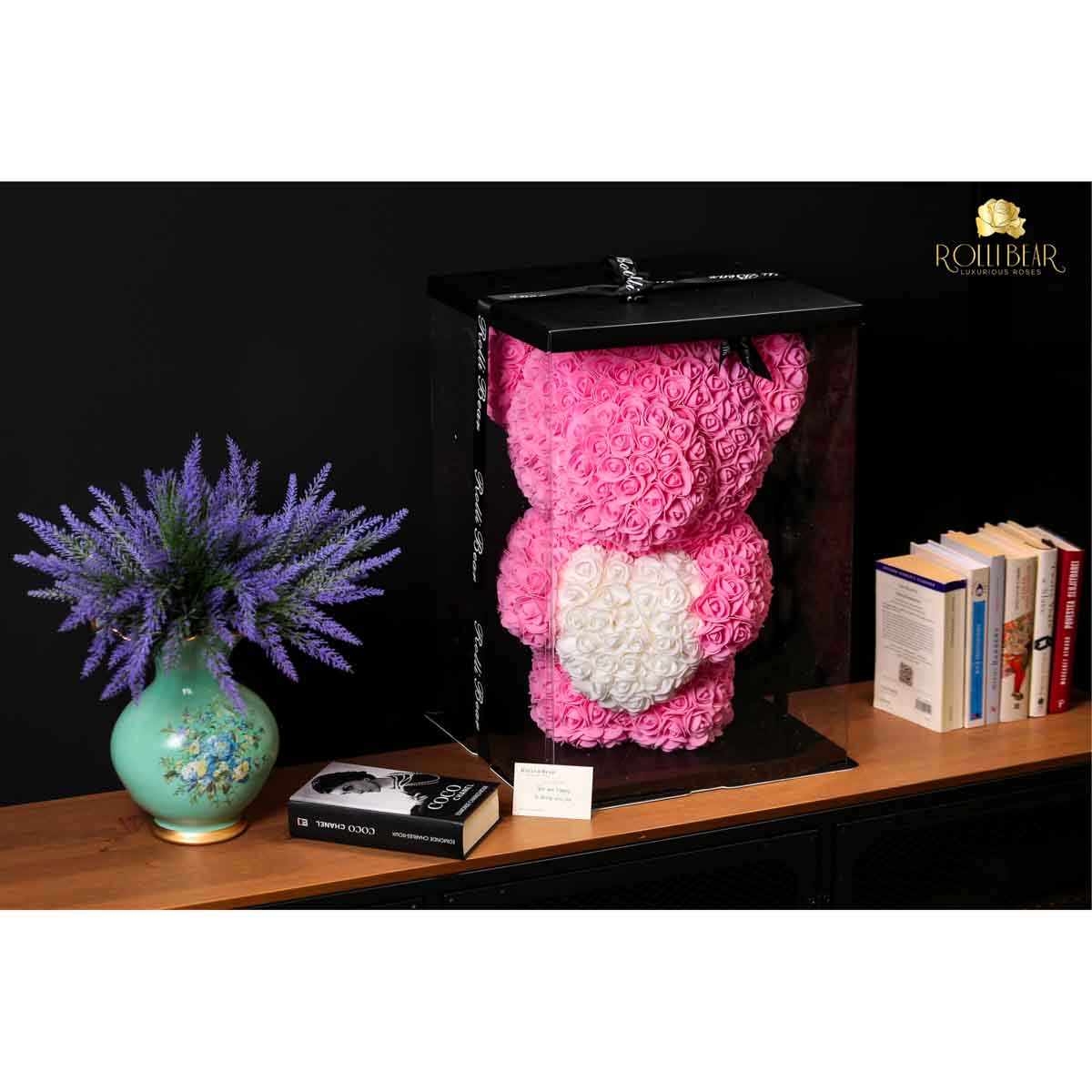 Fabricat manual din peste 1000 de trandafiri și creat pe baza jucăriei „Ursuleț de pluș”, populară de mai bine de 120 de ani.